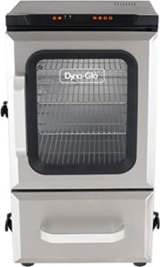 Its technology made for laid back smoking, easy cleaning, and compact for storage. We would recommend beginners get the model with windows. With 732-square inches of cooking space and 4 four chrome-plated grills, the Dyna-Glo Digital provides more room than the average gas or charcoal grill.