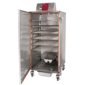 Though not the largest, the CookShack delivers a quality cook every time in small batches. Comfortably cooking 18lb turkey, 9lb salmon, or squeeze in 3 individual racks of ribs. That’s why it is fairly popular with backyard chefs. There is no bell and whistle tech like Bluetooth or a meat probe. The unit is a little expensive but a worthwhile investment for a flawless performer that lasts for decades.
