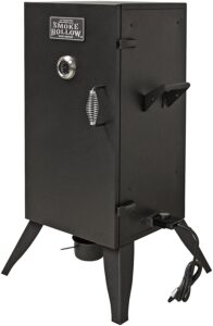 At a glance, this oven styled electric smoker looks like a vault. The welded, double-walled construct is just as impressive at holding heat as the Spin Glass insulation inside the cooking cabinet. We doubt you’ll be disappointed by the ability to set and forget, even in winter. Well built expect fall off the bone tenderness.
